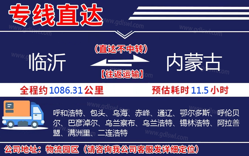 臨沂到內(nèi)蒙古物流專線是一條連接臨沂和內(nèi)蒙古的貨物運(yùn)輸線路,由陸順物流公司提供直達(dá)不中轉(zhuǎn)運(yùn)輸服務(wù),能為企業(yè)、工廠、貿(mào)易商以及個(gè)人提供高效、便捷、可靠的貨運(yùn)解決方案
