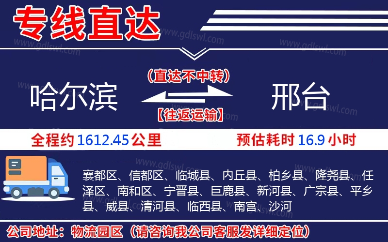 哈爾濱到邢臺(tái)物流專線是一條連接哈爾濱和邢臺(tái)的貨物運(yùn)輸線路,由陸順物流公司提供直達(dá)不中轉(zhuǎn)運(yùn)輸服務(wù),能為企業(yè)、工廠、貿(mào)易商以及個(gè)人提供高效、便捷、可靠的貨運(yùn)解決方案