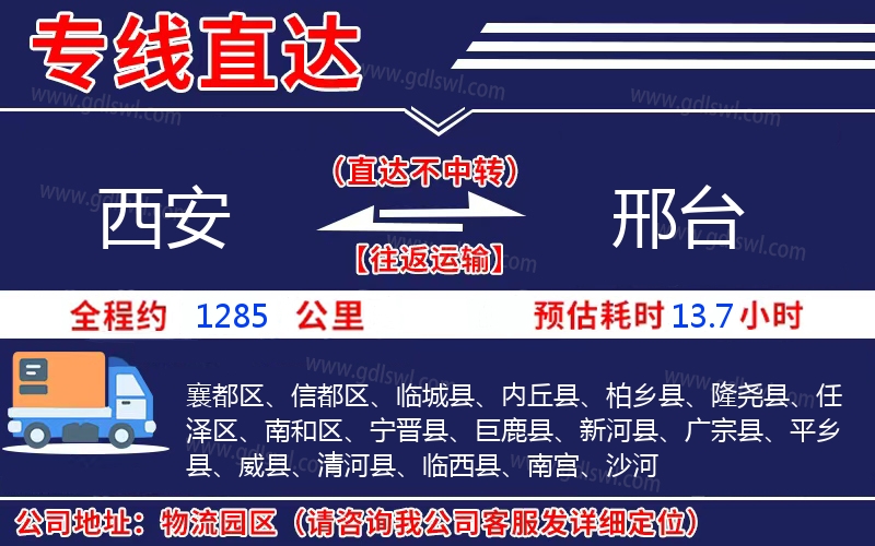 西安到邢臺(tái)物流專線是一條連接西安和邢臺(tái)的貨物運(yùn)輸線路,由陸順物流公司提供直達(dá)不中轉(zhuǎn)運(yùn)輸服務(wù),能為企業(yè)、工廠、貿(mào)易商以及個(gè)人提供高效、便捷、可靠的貨運(yùn)解決方案